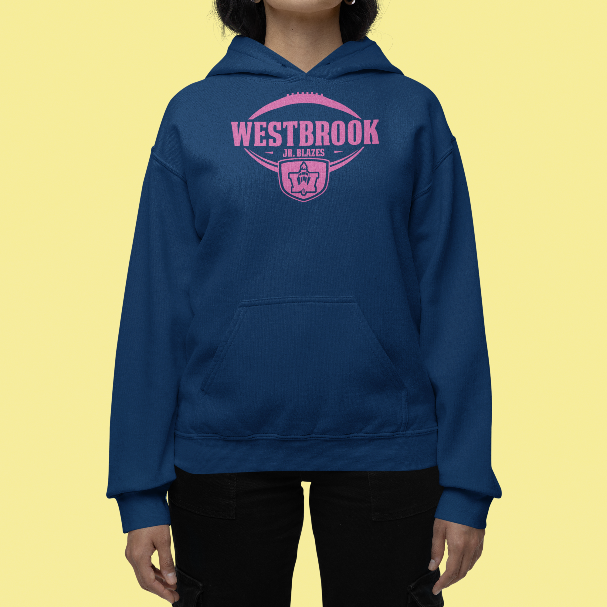 Embrace warmth and team spirit with our Pink Logo Hoodie from Westbrook Youth Football! This cozy navy hoodie features the standout pink Westbrook Youth Football logo, symbolizing the vibrant support within our 501(c)(3) non-profit dedicated to youth football in Westbrook, Maine. Beyond its cozy comfort, this hoodie represents the spirited encouragement and unity our program fosters among young athletes, celebrating their passion for the game.